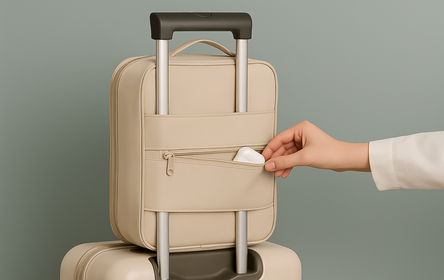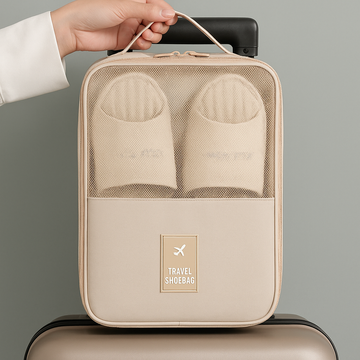 Deze slimme schoenentas schuif je moeiteloos over de hendel van je koffer, geen gedoe meer met losse tassen onderweg. Het extra ritsvak aan de achterkant is perfect voor je AirPods, paspoort of boardingpass. Alles binnen handbereik en netjes opgeborgen.